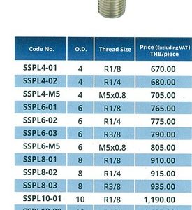 PICO สำหรับ งานอาหาร และงานลม ข้อต่อตรงเกลียวนอก SUS316