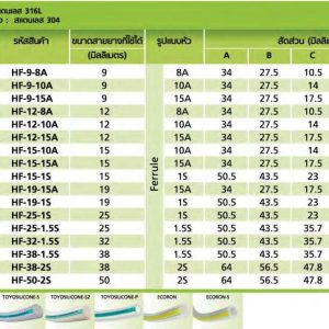 | ฝั่งเครื่องจักร | ข้อต่อเฟอร์รูล | 8A,10A,15A,1S,1.5S,2S |