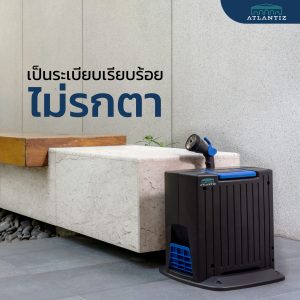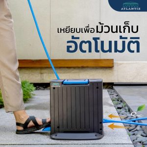 ชุดสายยางรดน้ำต้นไม้แอตแลนติส เป็นสายยางม้วนเก็บอัตโนมัติด้วยการกด หรือเหยียบ สวยงาม สะดวก ปลอดภัย ไม่รกรุงรัง