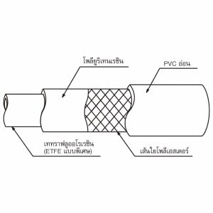 TOYOFUSSO SOFT Hose เป็นสายใยด้ายทนแรงดัน ใช้ในงานจ่ายแรงดัน ผิวภายในผลิตจากเตตราฟลูออไรด์ ฟลูออรีนเรซิน (ETFE ฉบับปรับปรุง) และผิวภายนอกเคลือบด้วยเรซิน PVC