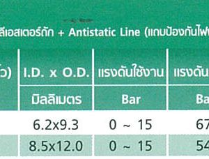 | คุณลักษณะเฉพาะของผลิตภัณฑ์ | วัสดุหลัก: โพลียูริเทนเรซิน วัสดุเสริมแรง: เส้นใยโพลีเอสเตอร์ ID: 6 mm ~ 8 mm ช่วงอุณหภูมิใช้งาน: -20℃ ~60℃ |