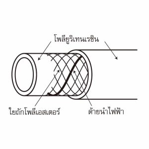 สายใยด้ายทนแรงดัน ใช้ในงานจ่ายแรงดันลม ผลิตจากโพลียูริเทนเรซินแบบพิเศษและด้ายนำไฟฟ้า