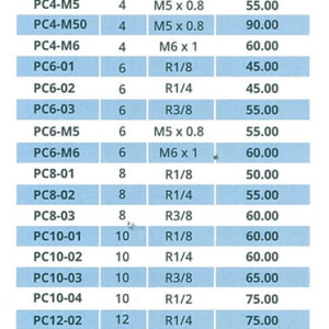 รหัสสินค้า: PU4 - PU16 หมวดหมู่: PISCO, สายลมและข้อต่อ PISCO ป้ายกำกับ: ฟิตติ้งลม