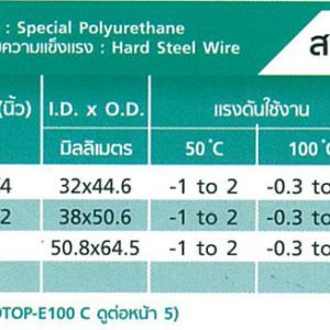 | คุณลักษณะเฉพาะของผลิตภัณฑ์ | วัสดุหลัก: โพลียูริเทนเรซินพิเศษ วัสดุเสริมแรง: ลวดเหล็กหนัก ID: 32mm~50mm ช่วงอุณหภูมิใช้งาน: -5℃ ~100℃ |
